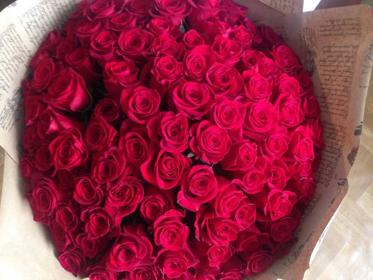 Букет способен произвести настоящий фурор на абсолютно любого человека. Любимая девушка или члены семьи, безусловно, оценят все великолепие огромного количества красивых красных роз. Красный цвет всегда считался символом любви и страсти. Свойственный розам запах наполнит моментально всю комнату, придавая романтичность обстановке.